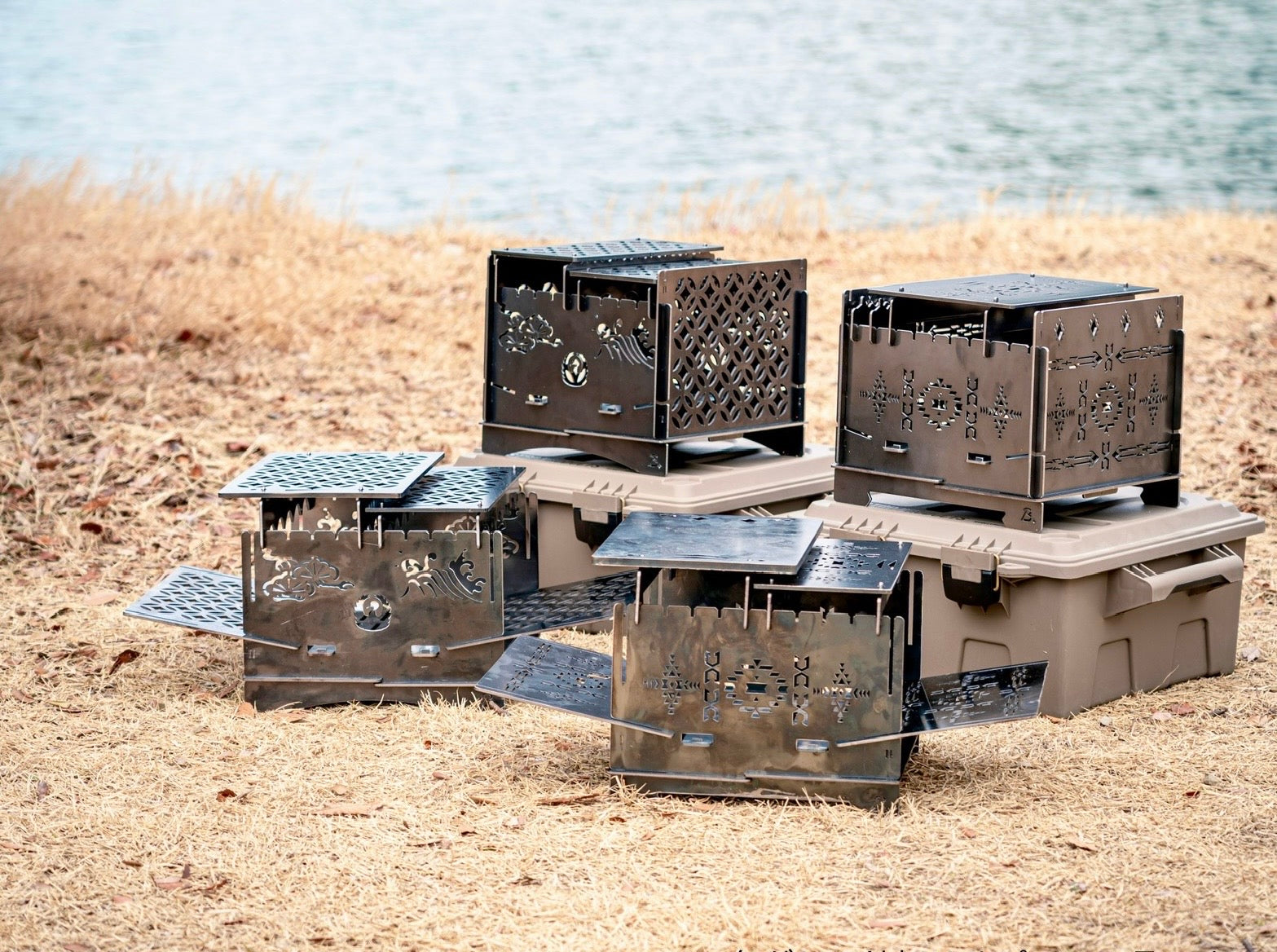 【3WAY焚き火BOX】和柄 スタンダード+鉄板S2枚付き